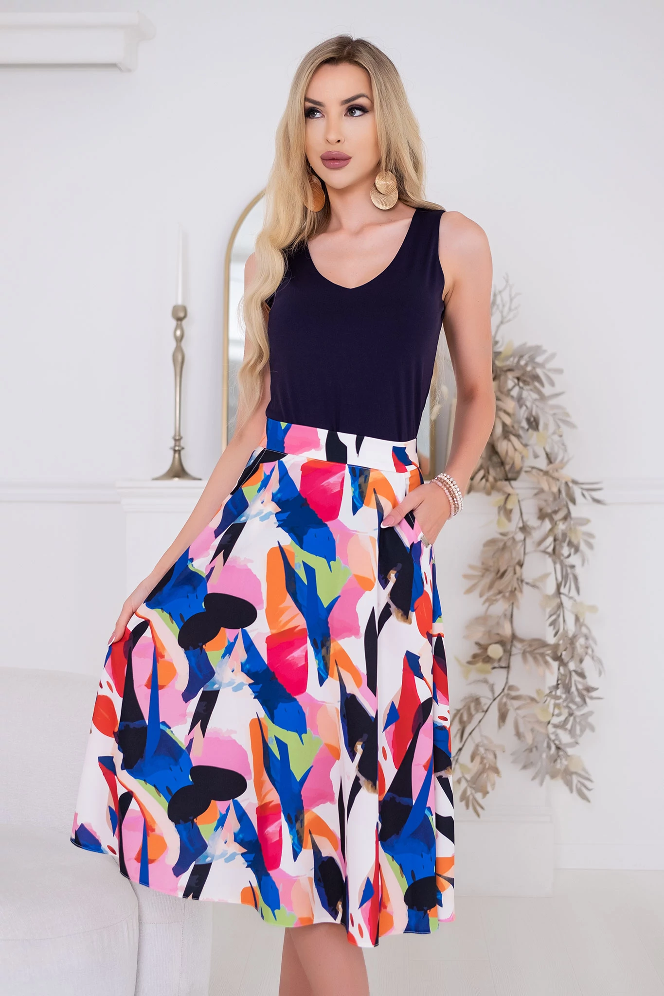 Testhezálló fazonú szoknya, gumis dekoratív elütőszínű derékkal, mely szegecsekkel díszített.