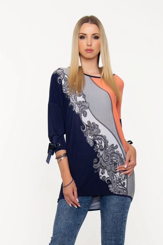 Laza szabású,ejtettvállú tunika, hosszú ujjakkal.