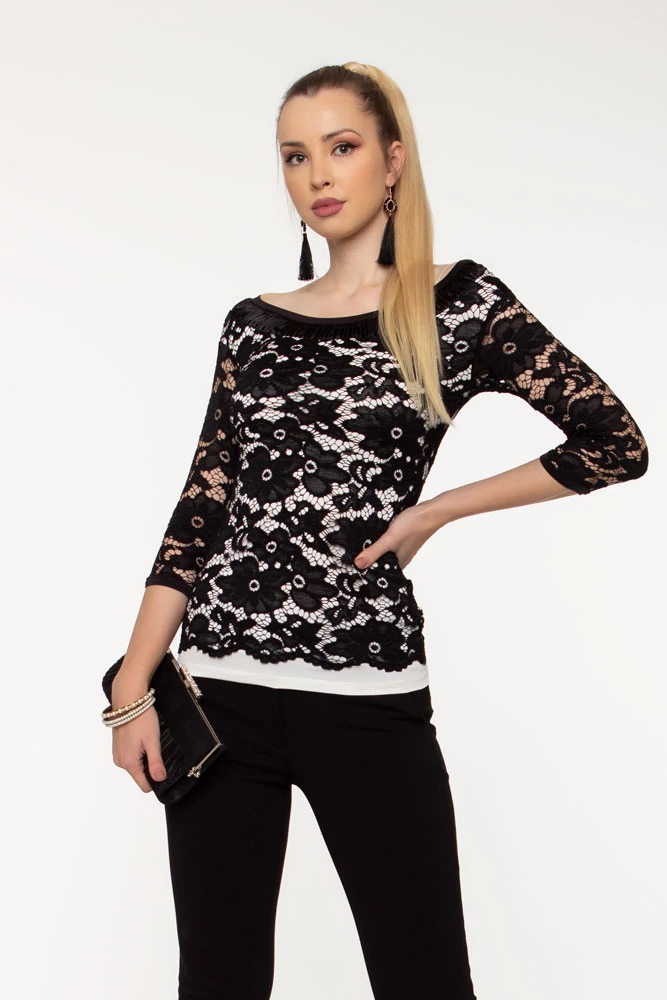 Eliza csipkés póló - fehér/fekete