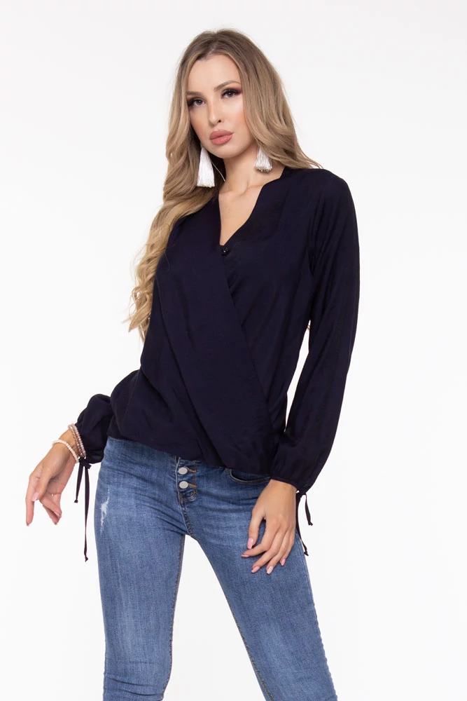 Dekoltázsán apró, dekoratív gombbal záródik.