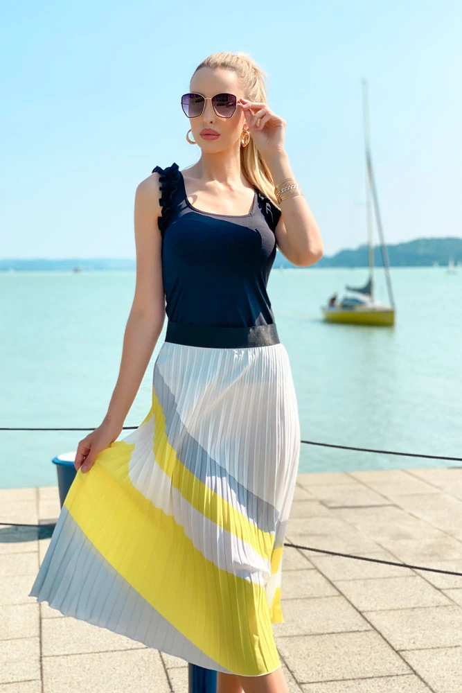 Testhezálló fazonú top, kocka nyakkivágással, karöltőn fodros rátéttel díszítve.  Anyagösszetétel: 95% poliamid, 5% elasztán  |