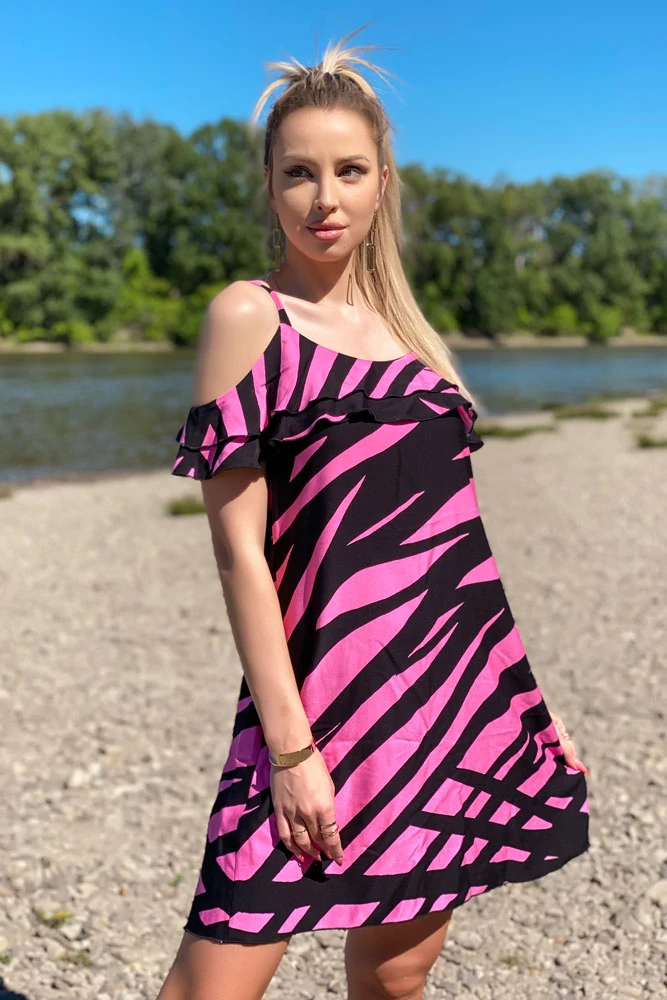 Violetta dupla fodros ruha - pink/fekete